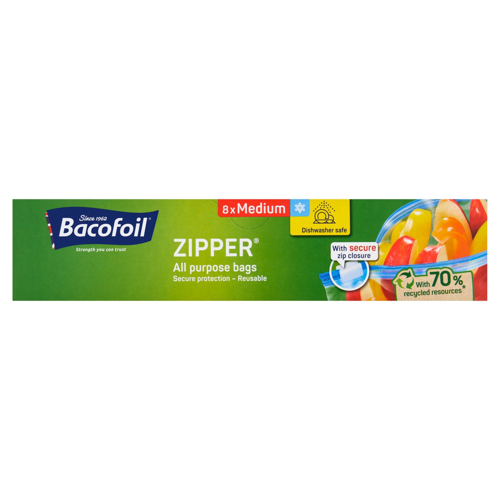 | Bacofoil's Medium Zipper Food Bags are the perfect all rounder for at home and on the go. Incredibly versatile and easy to use, they are perfect for fresh keeping, storing and freezing, and can even be used for transporting and organising. With a secure zip tight seal that fastens with a zip you can hear, there's no need to worry about leaks or items falling out. The zipper bags also come with a flexible stand alone base making them easier to fill. |