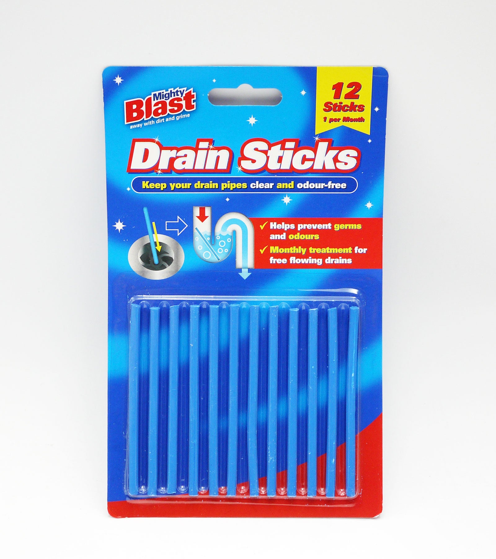 | Keep your drains free-flowing with this Pack of 12 Mighty Blast Drain Sticks. These handy sticks keep your drain pipes clear, allowing water to flow easily through them. They also prevent germs and odours, keeping your home smelling fresh. This pack contains 12 drain sticks for a monthly treatment that will keep your drains clear all year round. |