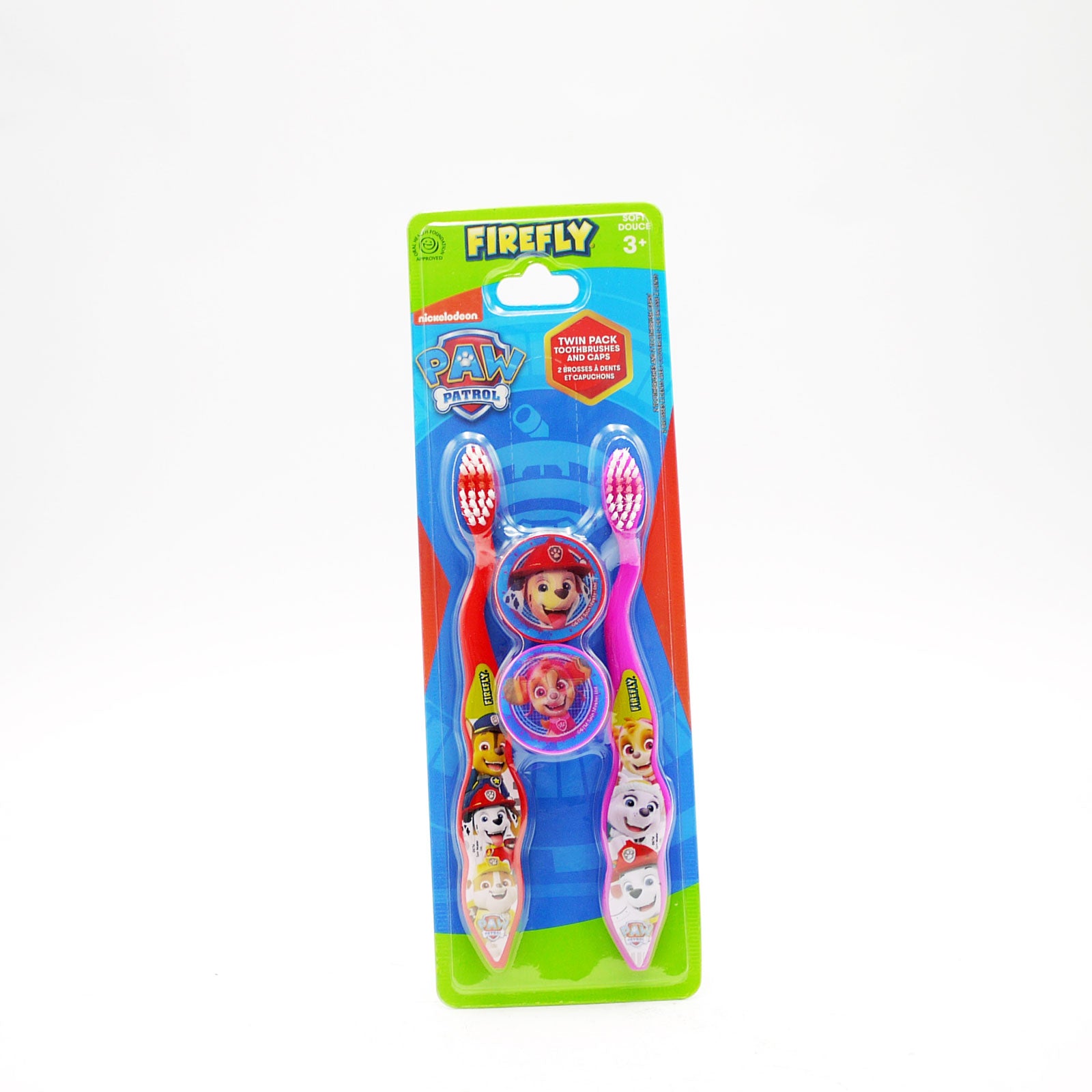 | This Pack of 2 Firefly Paw Patrol Toothbrushes and Caps is perfect for kids. The toothbrushes are printed with an engaging Paw Patrol design to make brushing their teeth more appealing, and they come with caps which are ideal for travel. It's the perfect set for little lovers of Paw Patrol. |