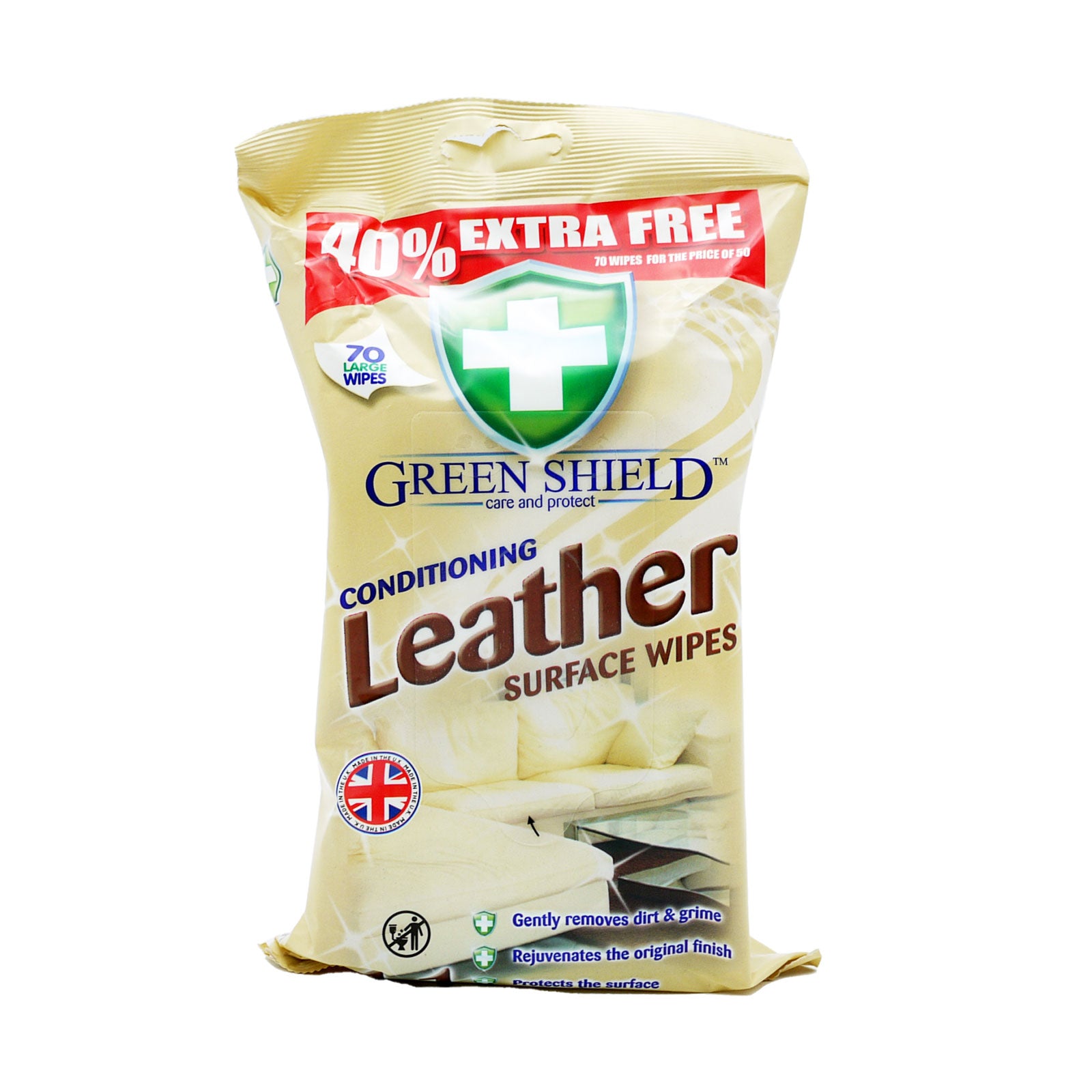 | Gently remove dirt and grime from your leather surfaces with these Greenshield Leather Wipes. With 70 large wipes included that gently moisturise and condition whilst rejuvenating the original finish and protecting the surface. |