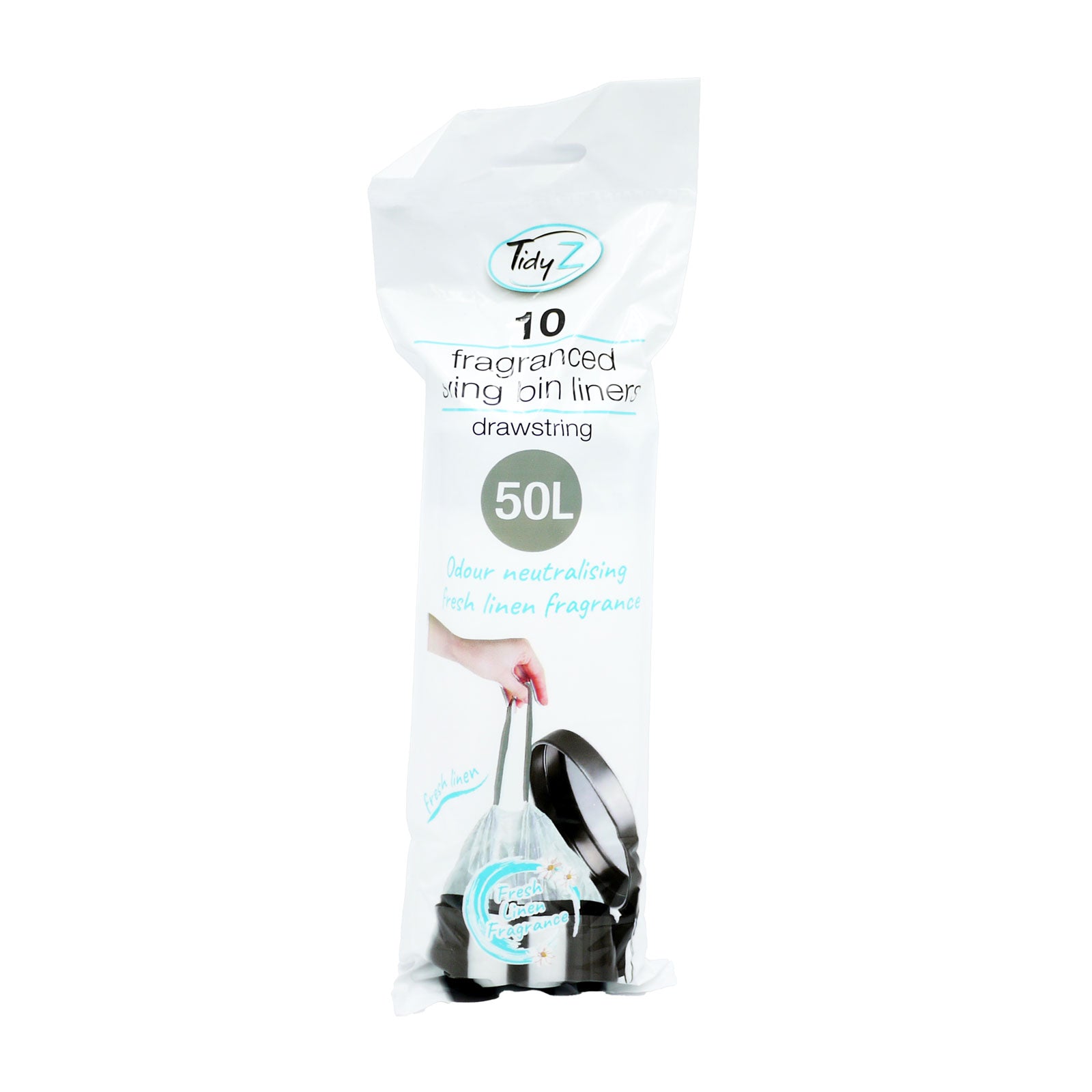 | Keep your space tidy and your bin fresh with this pack of Fragranced Swing Bin Liners. Providing an odour-neutralising fresh linen fragrance, it has a large 50-litre capacity that's perfect for the family kitchen bin. They have a drawstring handle which makes it super easy to neatly tie up your rubbish and dispose of it. |